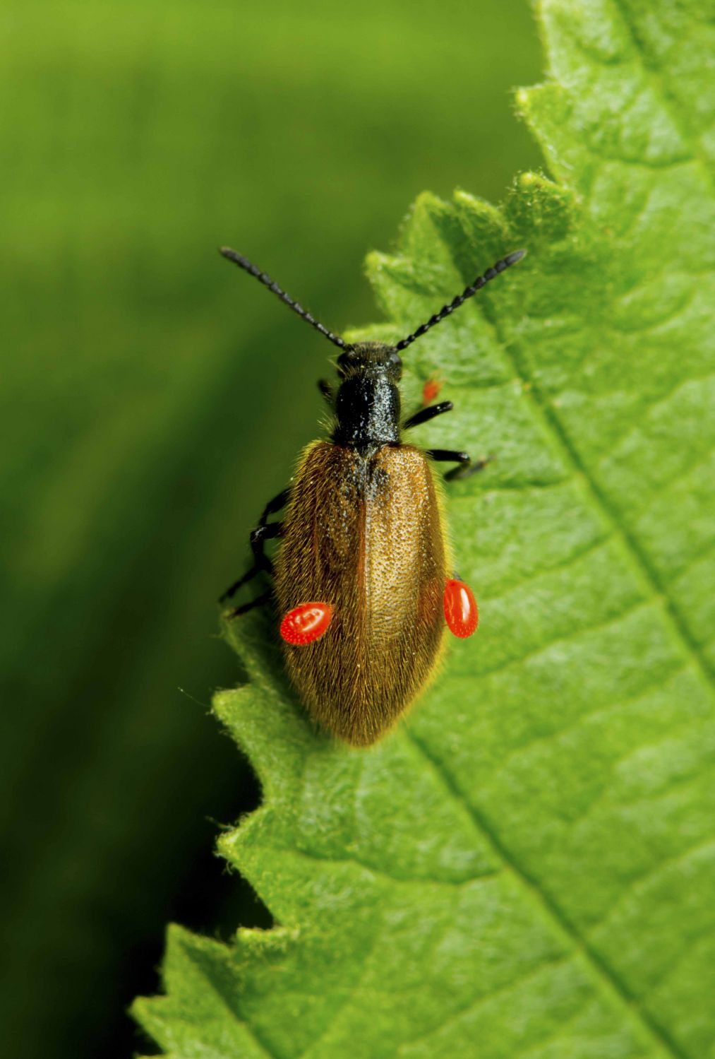 А жук - мохнатка Lagria hirta. Любопытно. покровы у нее тонкие, навреное этим и воспользовались