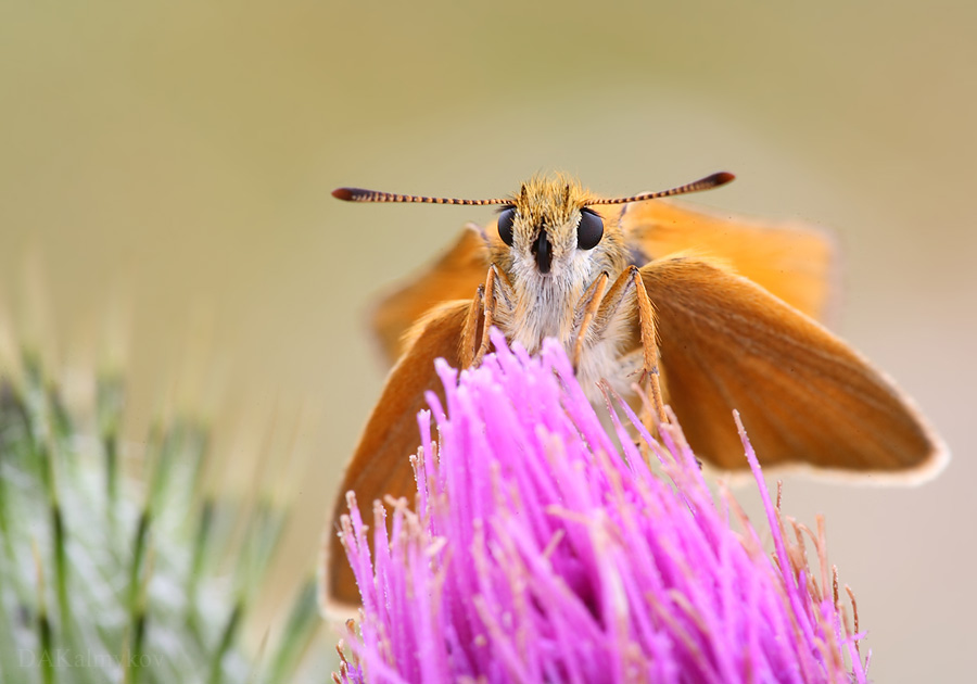 Нравится ракурс и общая цветовая тональность. Неинтересной её не назвала бы. Бабочка называется толстоголовкой. Теперь с критической точки зрения.
