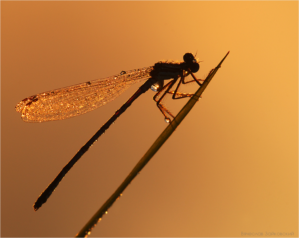 Возможно вспышка зло, но отсутствие оной привело к тому, что мокрая стрекоза превратилась в головешку. Цвета георгиевской ленты эффектны и мне нравятся.