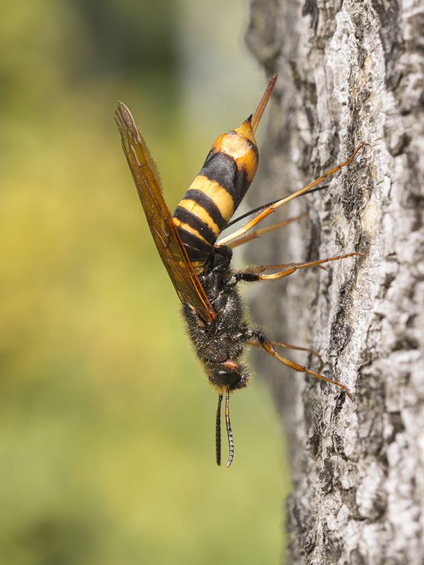 Я как раз на том же дереве в эти выходные (через неделю после съёмки рогохвостов) видел мегариссу (жёлтого цвета). Но что-то она высоко, увидев меня, забралась.
