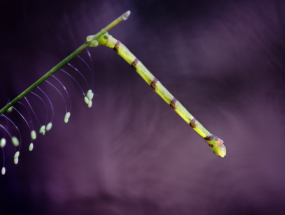 Стрекоз в росе снимали и снимают многие, таким образом сам по себе сюжет не нов, возможно даже тривиален. В данном случае мне хотелось сделать нечто новое, уйти от простой констатации факта. В макрофотографии нерезкие объекты на переднем плане как правило портят впечатление от кадра. Я подумал а почему бы не попытаться "сыграть" на нерезком переднем плане, попробовать сделать кадр более запоминающимся за счет этого. О результате судить зрителю.