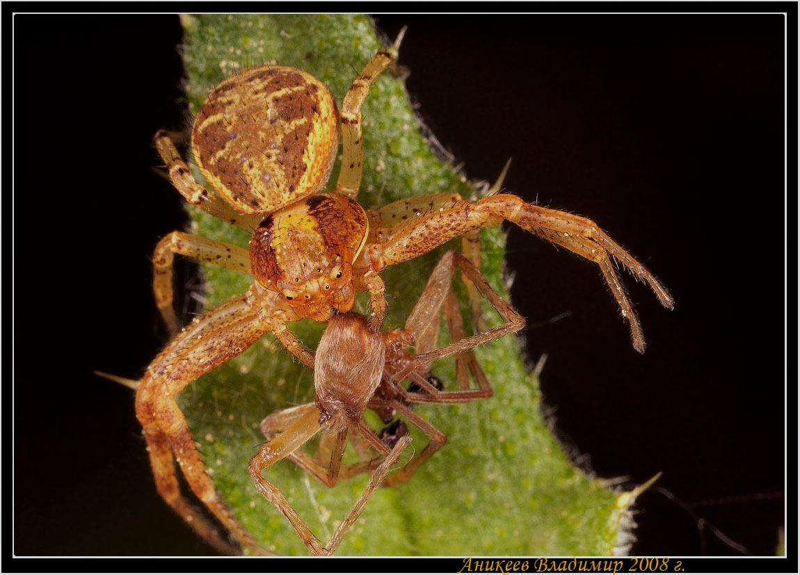 Классно! А вот можно ли считать это канибализмом, паучёк-жертва явно другого вида. Это как акула которая ест селёдку...