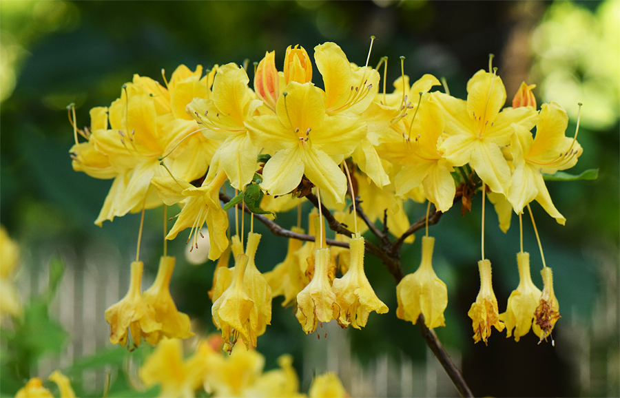 Я езжу обычно в то время когда цветет большинство сортов , но ранни, желтые е в это время уже отцветают и я обратил внимание на то, что отцвевшие цветки сьезжают по пестику и висят как колокольчики. Думал что так у желтых, но оказалось что у листопадных почти у всех так. Вчера заехал по дороге с работы, но уже почти все отцвели. Машин на стоянке было много, это наверное те кто раньше приехать не смог