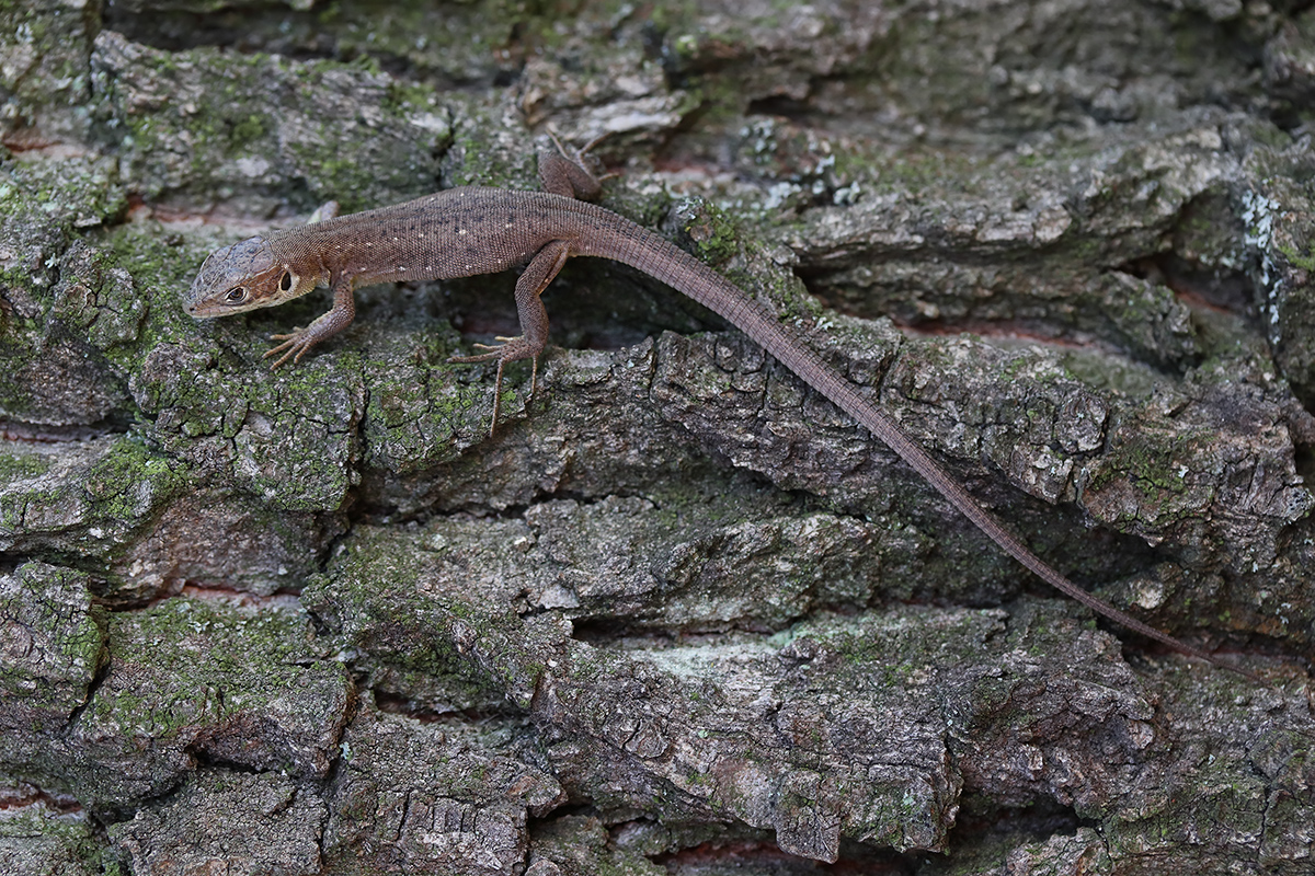 Darina: Отличные фото! Но с определением я бы поспорила. Если ящерицы мелкие (а судя по листку дуба на з.п. , да и по дате съемки, это именно так), то я бы предположила молодняк зеленой ящерицы Lacerta viridis. На эту мысль наводит длиннейший хвост и длинные задние лапы с особо удлиненным 4-м пальцем у особи на втором фото, да и на основном фото эти пальчики видны этаким захватом-в-шпагате из-за ветки. К тому же живородку загнать на дерево затруднительно (хотя и лезет иногда на стволы по собственному произволению, но прячется охотнее в листовом опаде, а на тонкие ветки никогда практически не влезает), а вот зеленые - лазают не хуже мартышек - задние конечности к этому отлично приспособлены, и удирают всегда в кусты или на деревца погуще и по возможности колючие). Детали щиткования не очень хорошо видны, но, кажется, барабанного щитка нет, а заглазничных 2 (у живородки он есть, а заглаз. 1 ). На цвет не смотрите - сеголетки зеленой всегда коричневато-бурые, и этим действительно похожи на живородок, их часто путают ))