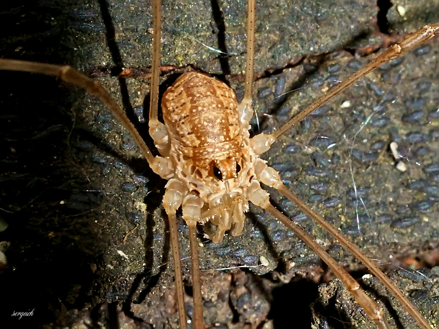 Это сенокосец - представитель самостоятельного отряда Opiliones (= Phalangida) в классе Паукообразные (Arachnida).