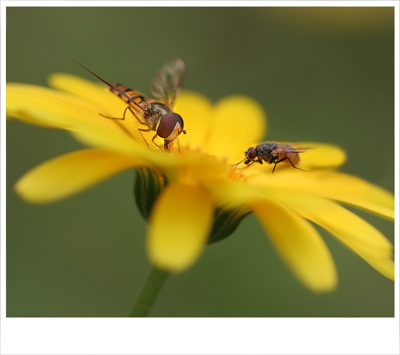 Чую я, в кадре прячется и еще один персонаж... ромашка оплетена паутиной, и несколько лепестков склеены -- это не иначе логово паучка... Хорошее фото!