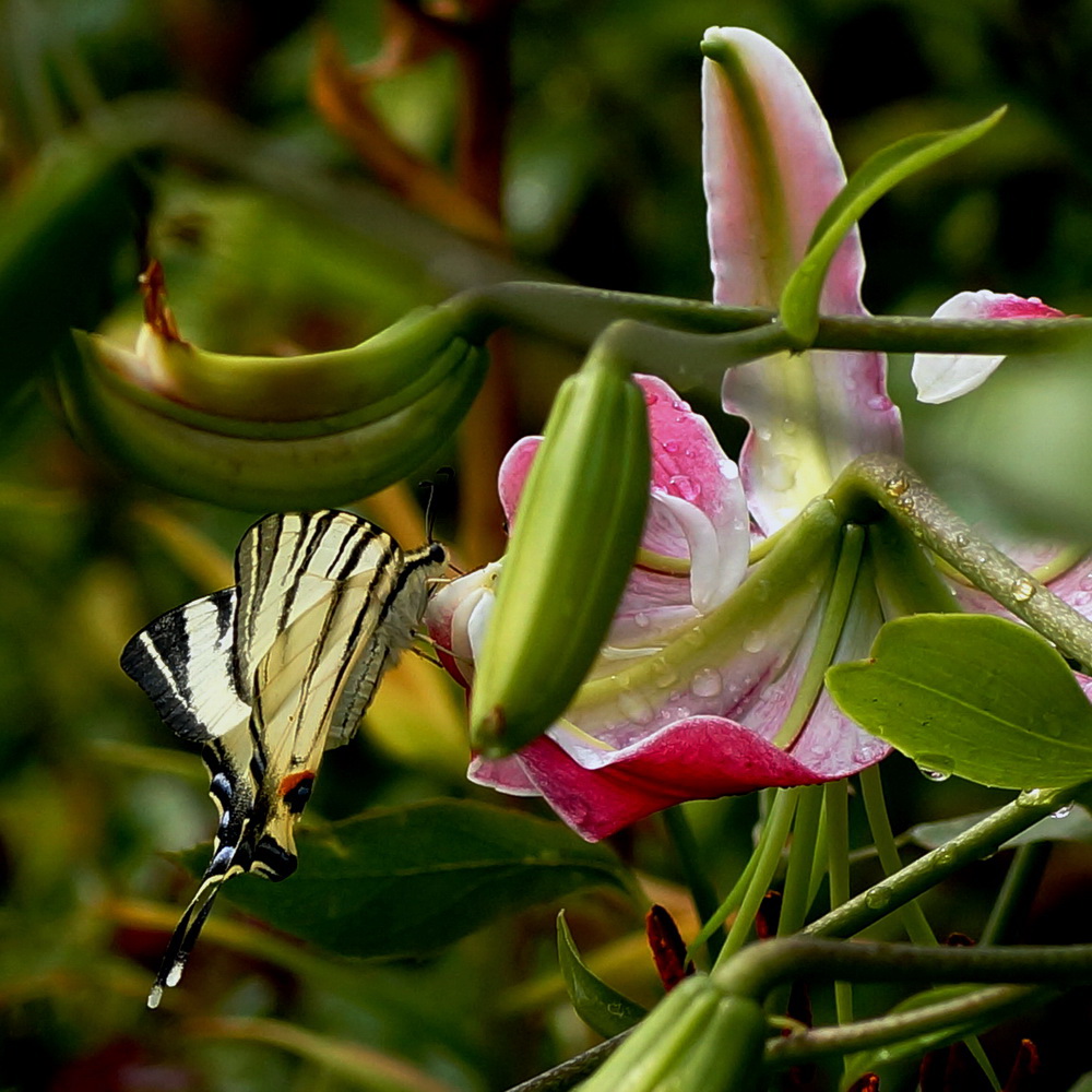 Ну как бы обьяснить.. Когда возникло название (а я их не придумываю, они сами возникают),- то вероятно мне казалось что это похоже на адмирала в белом кителе, стоящем на палубе розового корабля, на адмиральском мостике, (то есть на лилии), на вахте. То есть и бабочка и цветок названы так в переносном смысле. Это метафора. А по Вашему мнению название должно быть буквальным: "Iphiclides podalirius на чалмовидной лилии".