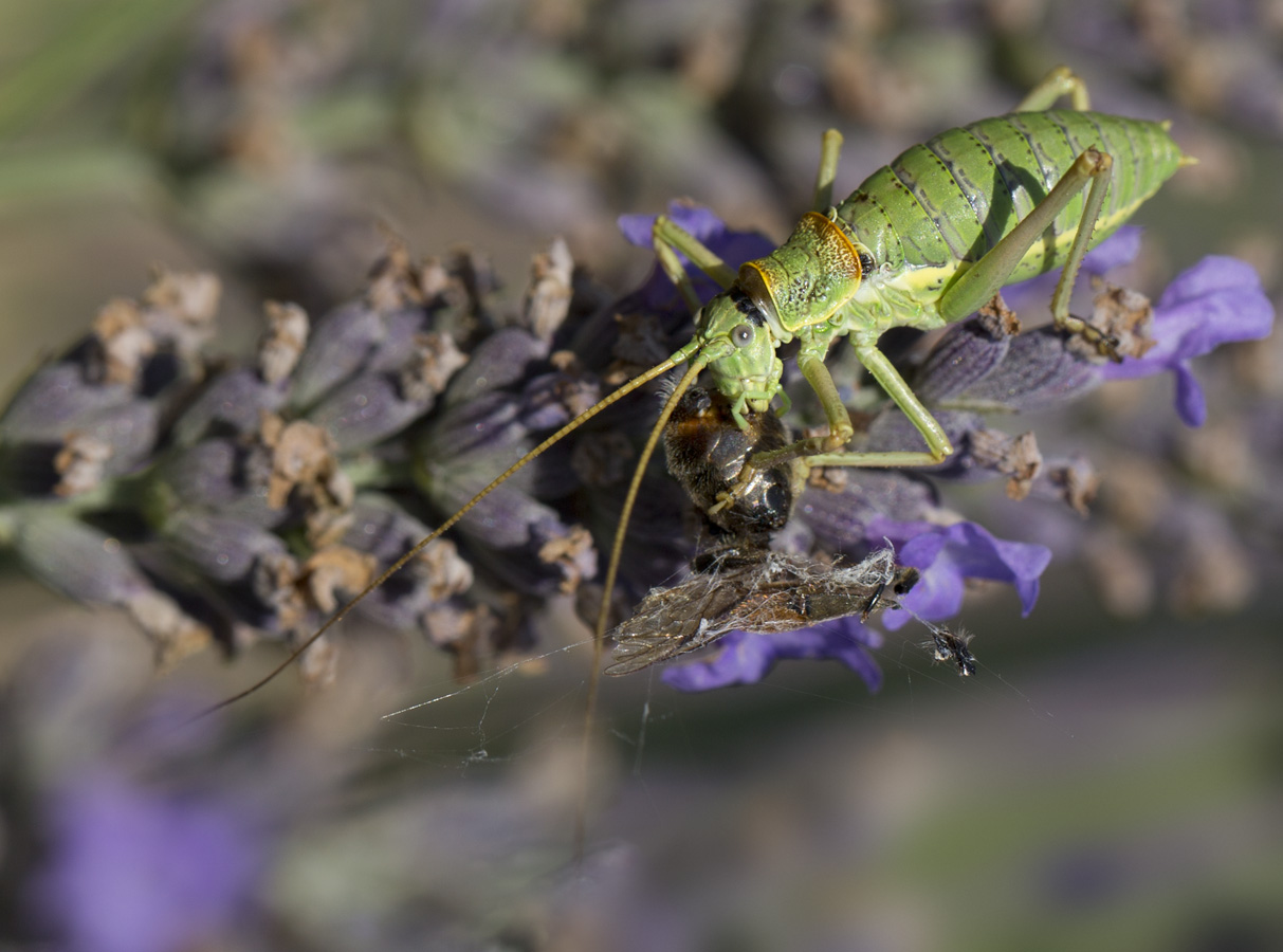 Интересный момент! Повезло кузнечику с находкой и фотографу тоже!