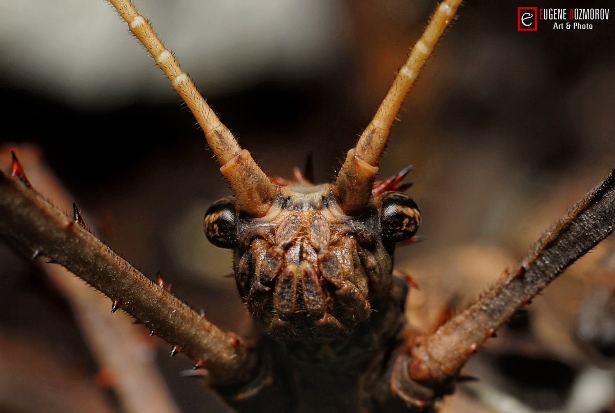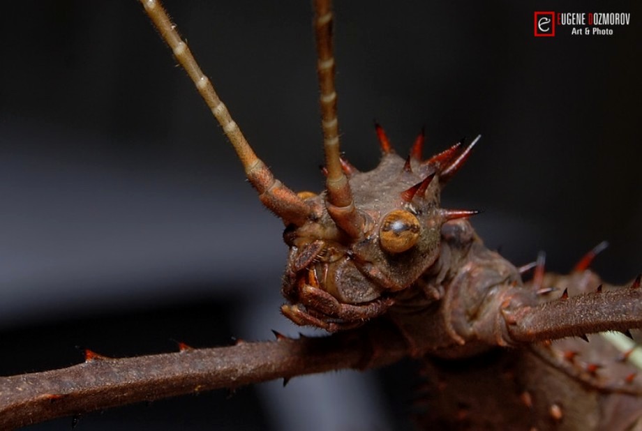 Защитный механизм у этого палочника работает по системе пробивания билетика в советском общественном транспорте, только тут представлен более мобильный вариант. Лезешь к нему рукой, а он передними лапами тебя обхватывает крепко, а тем временем задними лапами с шипами начинает дырявить руку при малейшем её шевелении - хватка сильная, оторвать проблематично без нанесения вреда насекомому. А инкубационный период в 18 месяцев делает этот вид очень дорогим (в плане оторвать пару ног чтобы с руки снять).