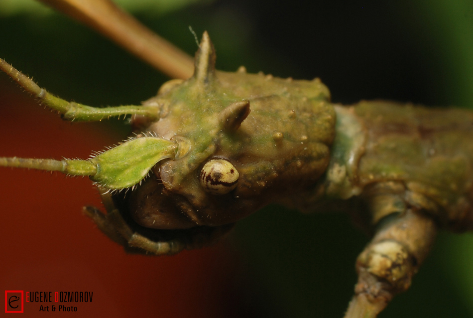 Клёвый палочник, который меня радует тем, что не уходит от своей кормушки, поэтому его можно держать просто в комнате без всяких террариумов, что я и делаю %)