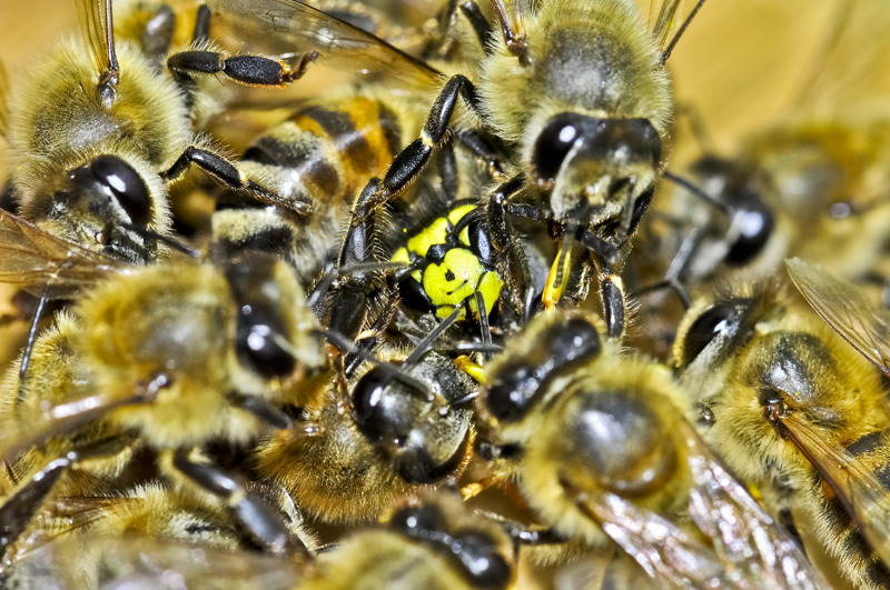 Уникальный момент! Пчелы любой породы именно так расправляются с шершнями и осами - заключают в клубок и убивают температурой.