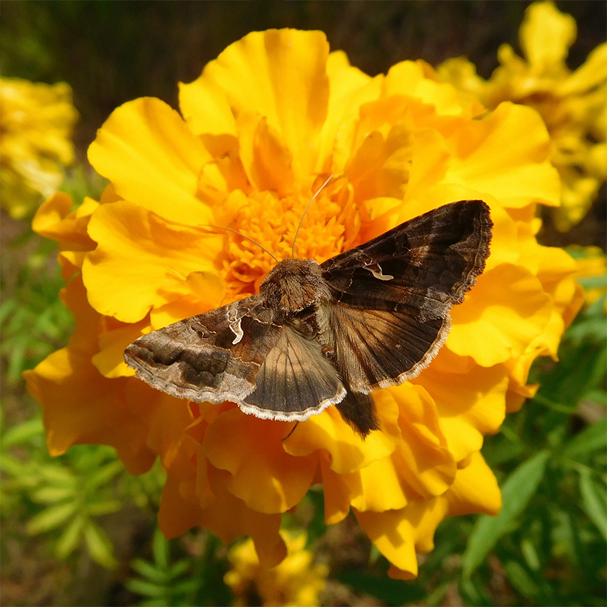 Снимок, на мой взгляд, интересен тем, как эта бабочка несмотря на такие утраты крыльев и наметившийся перелом умудряется летать. Специально размещаю обработанную фотографию только с её силуэтом.