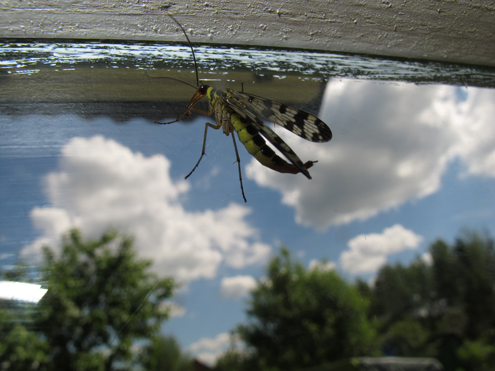 Объект на оконном стекле (во избежание лишнего мусора следить за его чистотой). Снимаю на автофокусе аппаратом Canon G11.Очень помогает поворотный экран. Из 50 кадров резких 5-7. Вспышка нужна чтобы перебить свет с улицы.Так же была снята оса, показанная 28 мая. Интересно снимать с внешней стороны окна.