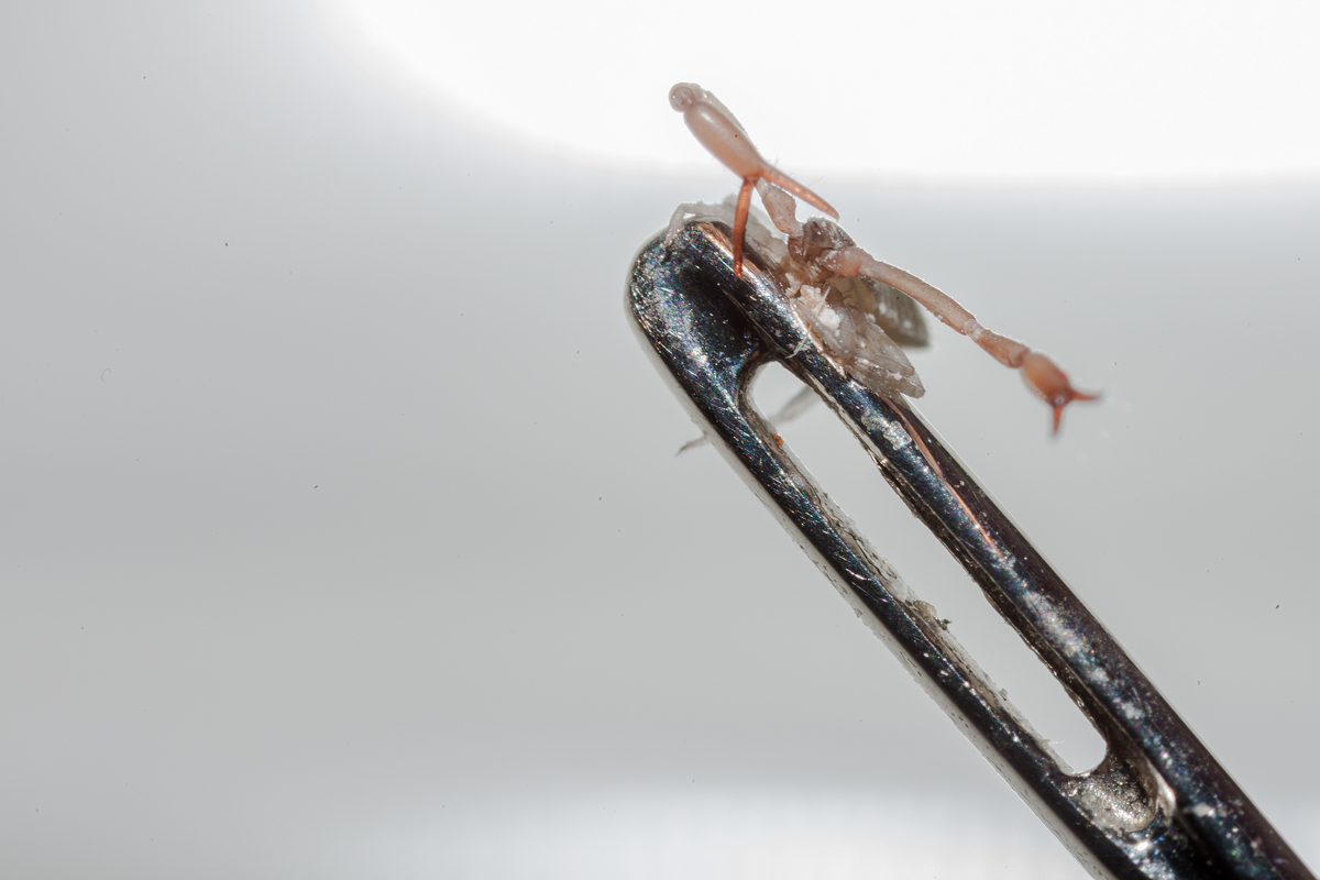 Уже собираясь умыться перед сном, в ванной я обнаружил крадущуюся по кафелю козявку. Спать конечно хотелось, но любопытство победило! На скорую руку прикрутил объектив и без претензий на высоко-художественность шлепнул несколько кадров. Кстати пока бегал за камерой, ЭТО успело далеко уйти... Еле нашел.