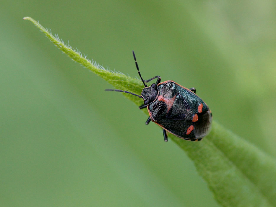 Вот он - рапсовый клоп в красном варианте, с красными пятнами и кантом (самка). И не знаешь,какой из двух краше - "белый" или "красный"......далее для простоты будем их так называть. Думалось, что и самец, и самка у красного клопа будут окрашены в красный цвет.....