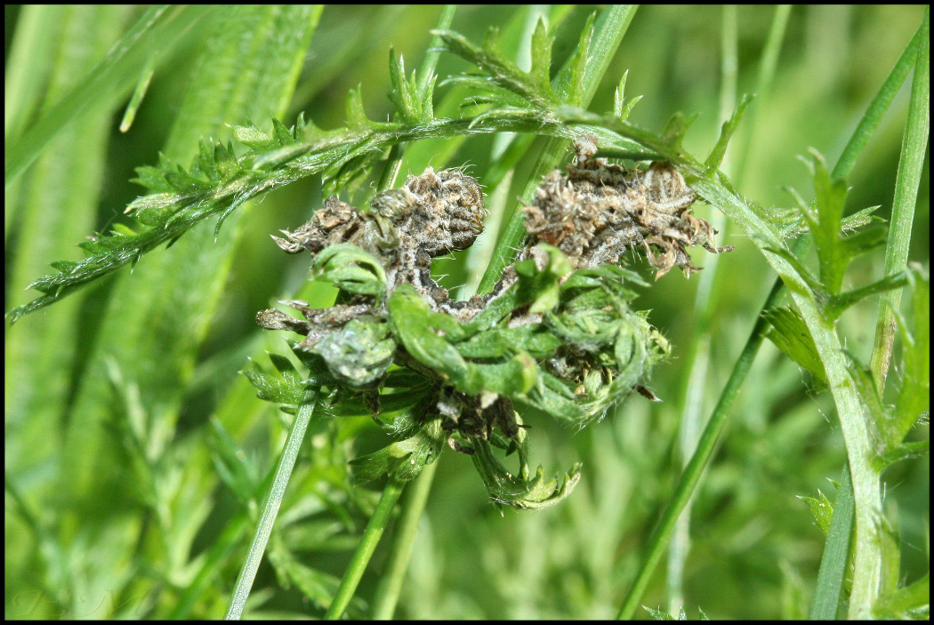 Я бы не обратила внимания на комок полувысохших листиков тысячелистника, если бы он не шевелился... Гуся в процессе строительства- встречаются каксухие,так и свежие листики.