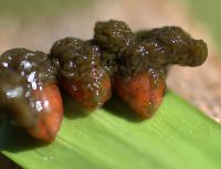 VLANN: Нет, это как раз то, что первым приходит на ум.) У многих листоедов личинка не разбрасывает экскременты где попало, а строит из них себе домик. У разных видов для этого существуют разные приспособления - у кого анус на спине, у кого специальный вырост вилочкой на последнем сегменте тела... Но фото интересные.