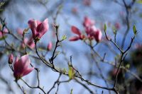 Магнолия этого вида в цвету- зрелище, конечно завораживающее! Цвести она начинает в марте, листьев почти нет, а ветки покрыты роскошными крупными цветами, которые чисто белые внутри и бордово-лиловые снаружи. Пройти мимо нее и не остановится просто невозможно. Сильного аромата у цветов, пожалуй, нет. Фотографировать цветы в хорошем ракурсе не так просто, т.к. растут они довольно высоко, а хотелось бы их снимать сбоку и чуть сверху. Дерево выглядит примерно так..