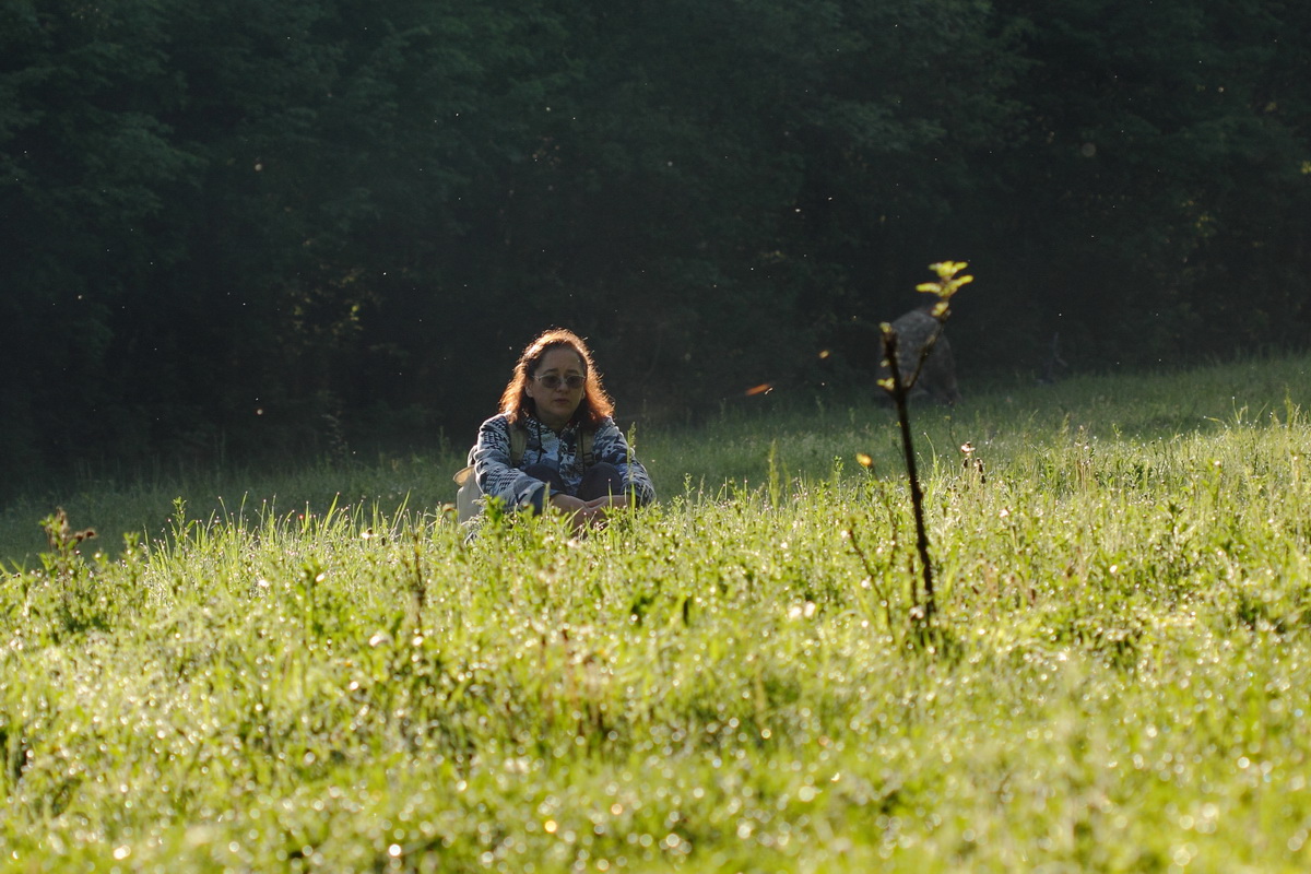 На следующее утро к исследованию поляны подключились делегаты Израиля. К сожалению Игорь забыл во палатах важную деталь и к стационарной съемке оказался не готов, а возвращаться мешала необходимость форсирования Коккозки. Но это не помешало искать моделей для других охотников.