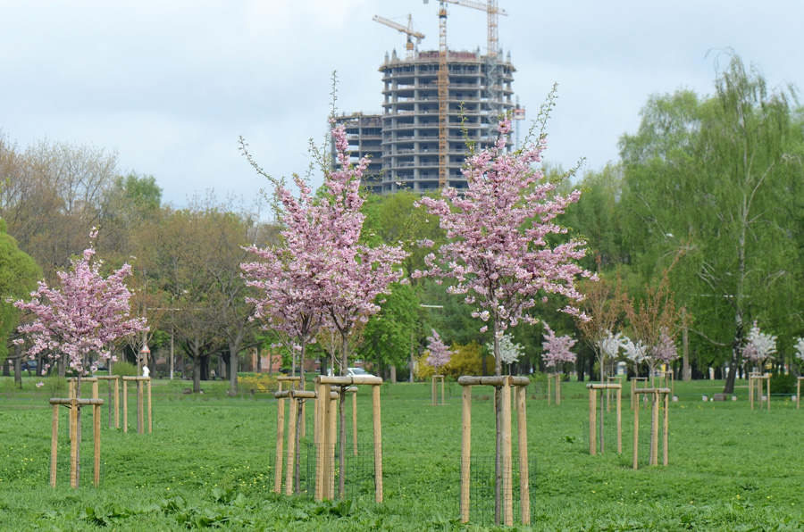 Спасибо японцам за чудесный подарок. Парк в котором практически никто кроме рядом живущих небывал, стал одним из самых посещаемых. Парк находится в задвинье, а не в центре города как большинство парков. К сожалению цветение сакуры быстротечно и самая красота была девятого мая, когда вся розовая сакура покрылась пышными цветами. Вчера поехал полюбоватся еще раз, но всю ночь шел дождь. Розовая сакура опустила цветы и они висели как уши у вислоухого зайца, но всеравно была прекрасна. Подумал, что снимать лучше вдвоем, отражатель нужен чтобы подсветить снизу. Или подставка под отражатель, потому что даревья высокие и держать отражатель нужно высоко, Белая сакура оказалась более стойкой и выглядела также как девятого. Третий сорт с большими бело розовыми цветами только начинает зацветать и четвертый только выпустил бутоны. Завтра по дороге надо будет заехать посмотреть.