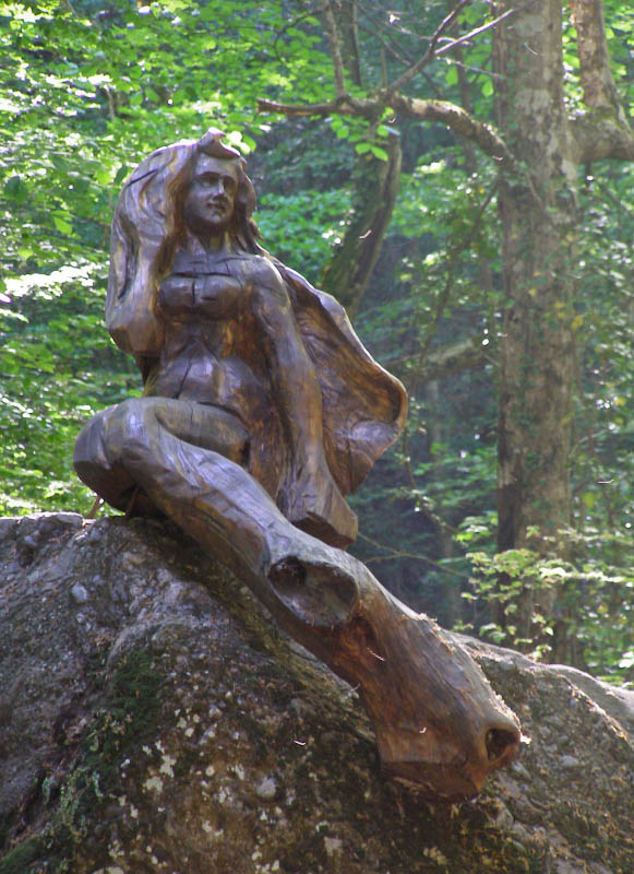 За селом бросаем машину и по лесной тропе Лида ведет нас к водопаду(я в горных походах традиционно беру на себя роль замыкающего),иногда несказанно удивляя своим ранним появлением еще сонных аборигенов,торгующих на тропе"сопутствующими "