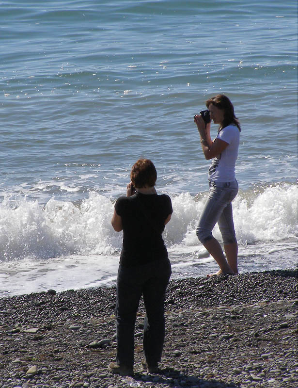 происходящим вообще с дороги,а вот дамы..Маша спокойно снимала,Лида храбро бросалась на волны,не забывая при этом профессионально отводить руку с камерой в