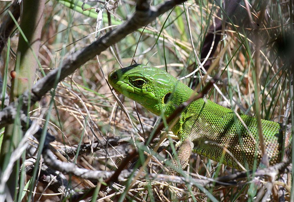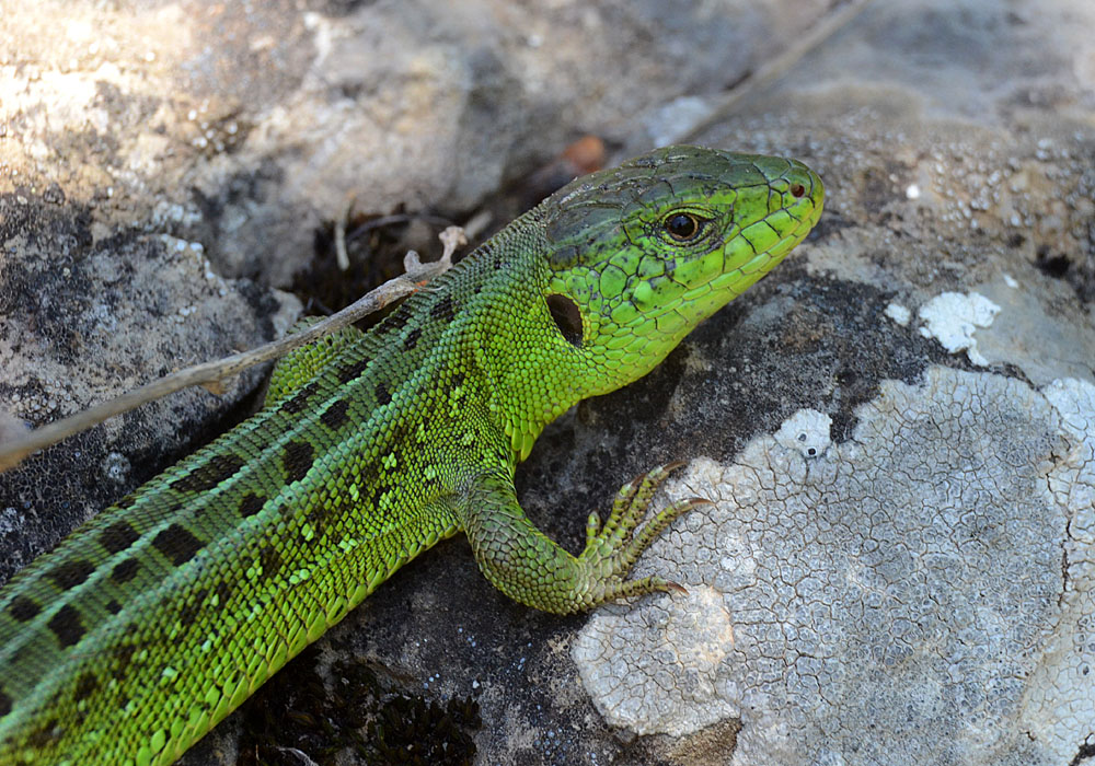 Я было совсем отчаялся снять портрет самца ящерицы, как заметил колоритного самца, выбравшегося из травы на плоский камень и согласившегося попозировать тут мне.