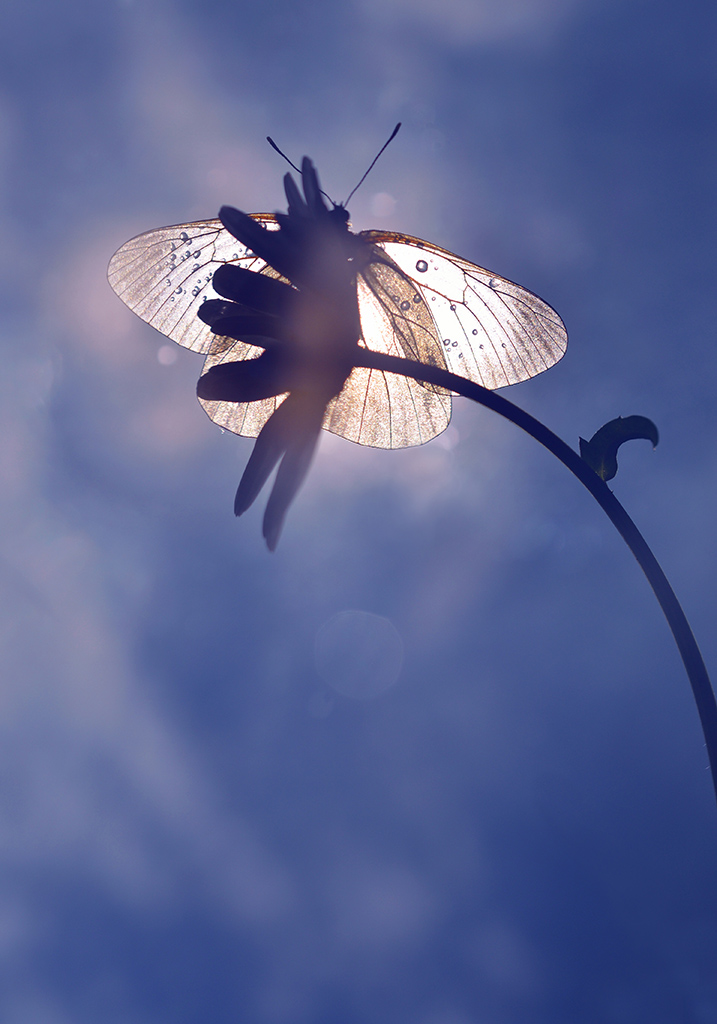 Нашла сейчас это фото, действительно там тоже цветы калины на воде, но все остальное совсем другое. Я бы не сказала, что это повтор. У меня тут главное - бабочка и солнце. Это скорее повтор моего вчерашнего снимка, но теперь я решила как-то обозначить поверхность воды, иначе не понятно, что это отражение в воде. Ну а там плавали как раз цветы калины, так уж совпало.