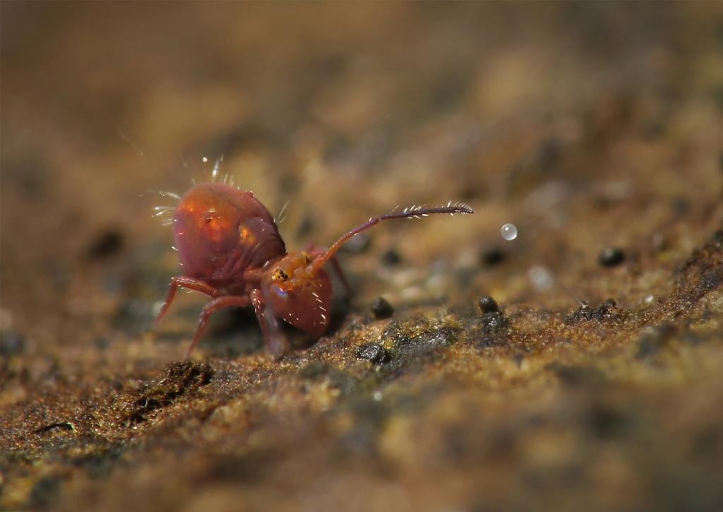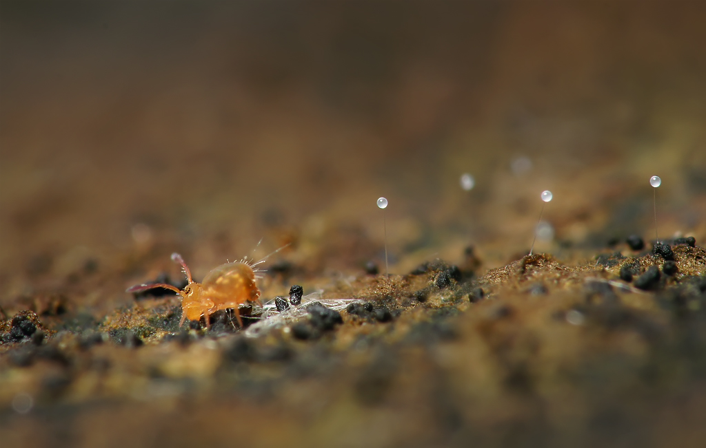 А это – детеныш коллемболы. Она еще совсем маленькая - раза в два меньше взрослых сородичей. В рассадник забрела случайно. Сидела долго и ничем не интересовалась, кроме пропитания. И вообще - нечего делать детям в таком саду!!!