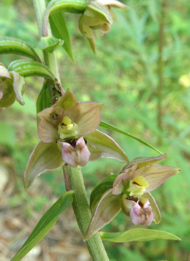 Вчера в Кемери зашел посмотреть как там орхидей которые видел неделю назад.. Они тогда еще не цвели Вчера с цветами было только одно растение и то только начинало. Почти на всех остальных сидела какаято черная тля. С собой на всякий случай Олимпус как всегда взял. Пробовал снимать ,но получилось плохо .В лесу темно ,ветер и выбора небыло. Дома на снимкe увидел, что внутри цветов чтото черное. Видимо тля сидит ждет когда цветы раскроются и потом все забираются внутрь. Наверно там вкусно, если они уже заранее очередь занимают .:d