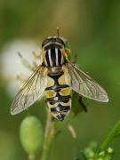 Сегодня утром встретился с крупной журчалкой (сем. Syrphidae). Ею оказалась самка ильницы трехполосой - Helophilus trivittatus (Fabricius, 1805).