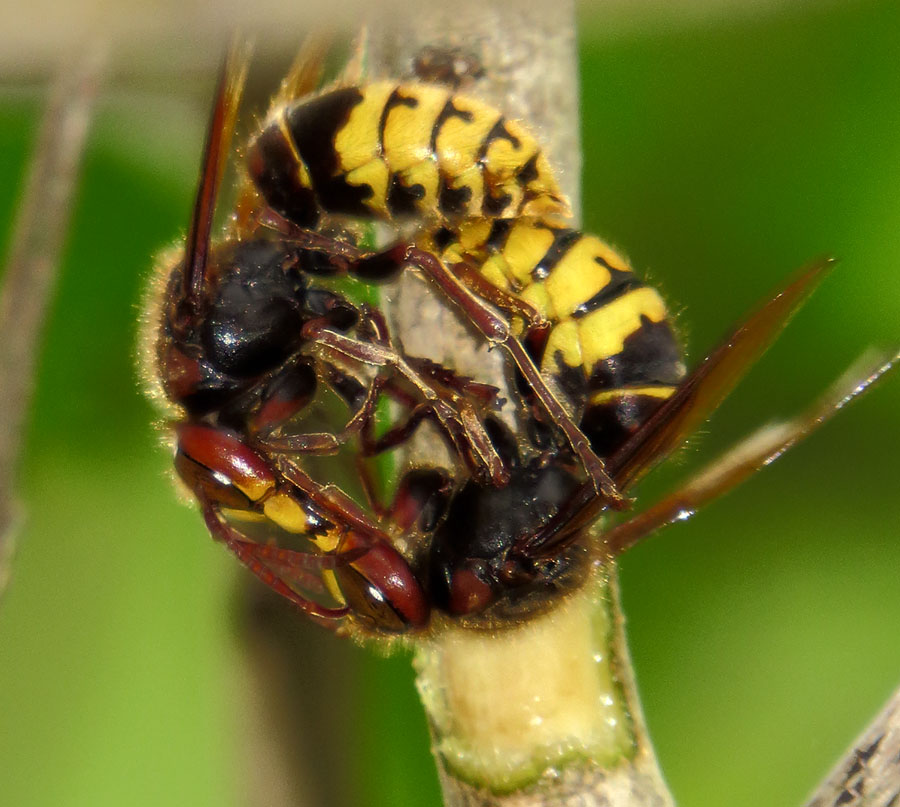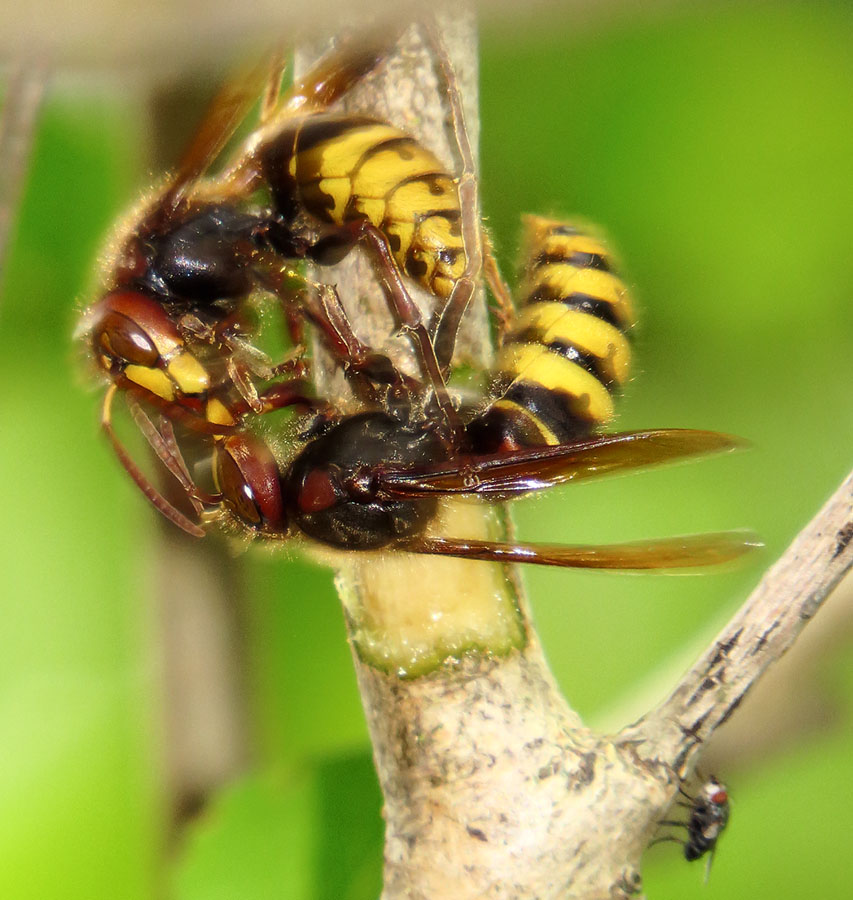 Ещё одна пара показывала воздушную акробатику. (Снять не успел, потому что меня позвали, а потом они уже упали и разлетелись.) Верхний висел на одном коготке, остальными ногами держал нижнего и вертел его как хотел, при этом облизывал ему голову. А нижний замер, едва лапками пошевеливал, я даже подумал вначале, что мёртвый.