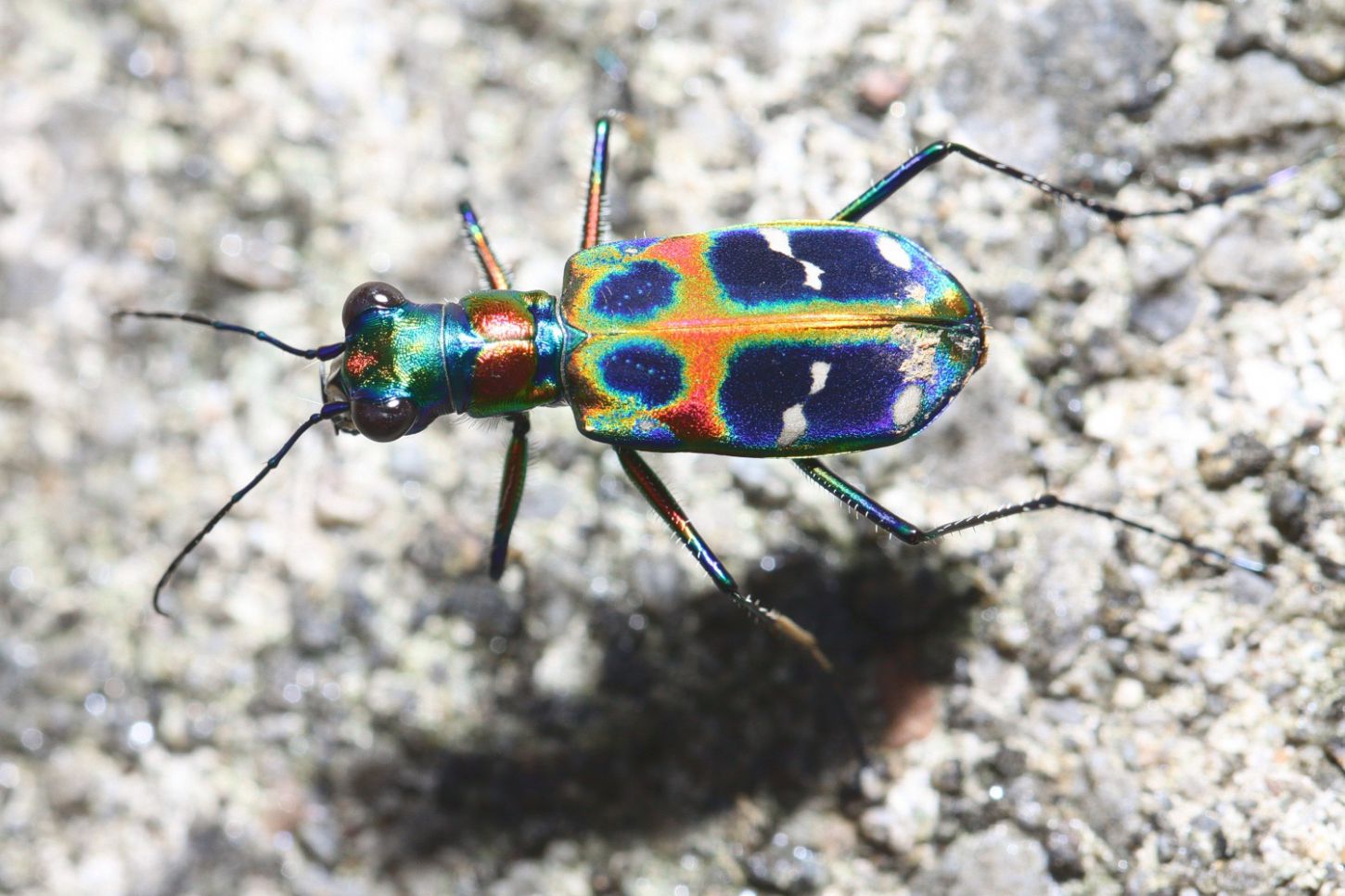 Прогуливаясь по парку, заметил, как на дорожку передо мной выскочило некое миниатюрное существо, переливавшееся всеми цветами радуги. Подобравшись поближе, в "существе" я узнал жука-скакуна вполне обычных размеров, но весьма впечатляющей окраски.