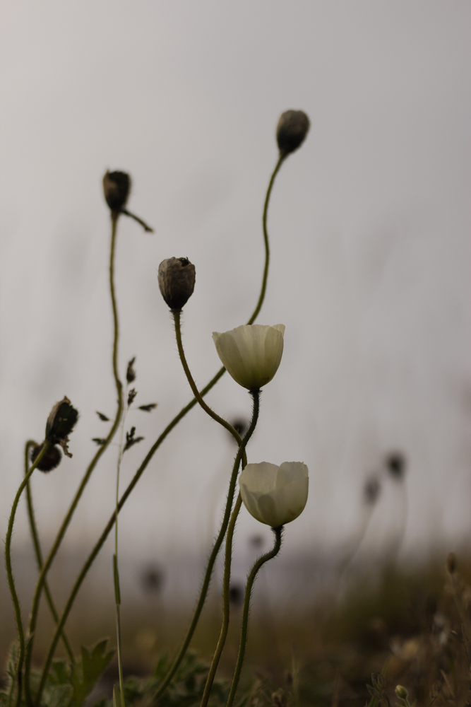 в этот день ночью выпал снег... горы вокруг поселка белоснежные, а на защищенных от ветра участках склонов местами еще вовсю цветут маки