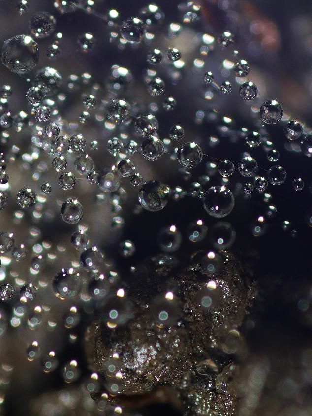 Две крохотные паутинки (около1,5 - 2 см) с ещё более крохотными росинками - единственное, что удалось найти из макрообъектов 9 ноября на даче.