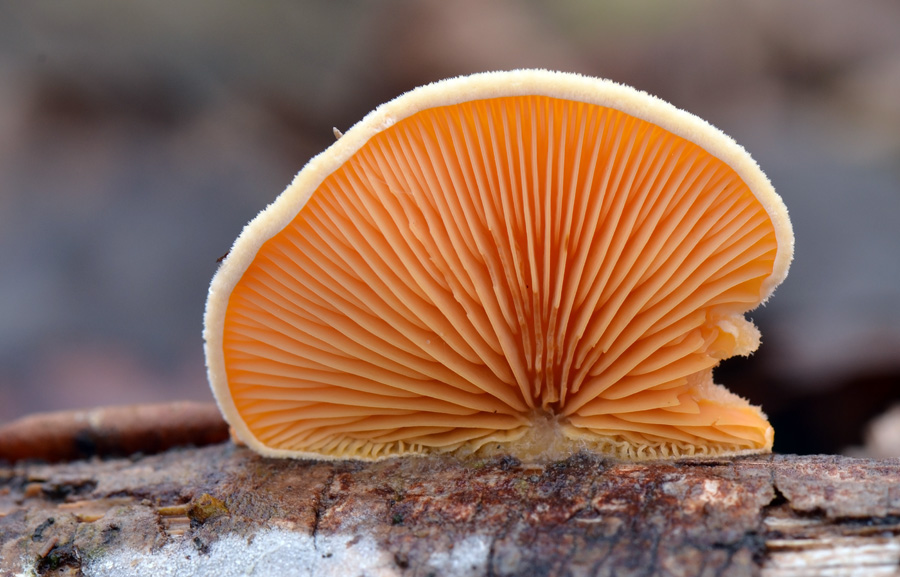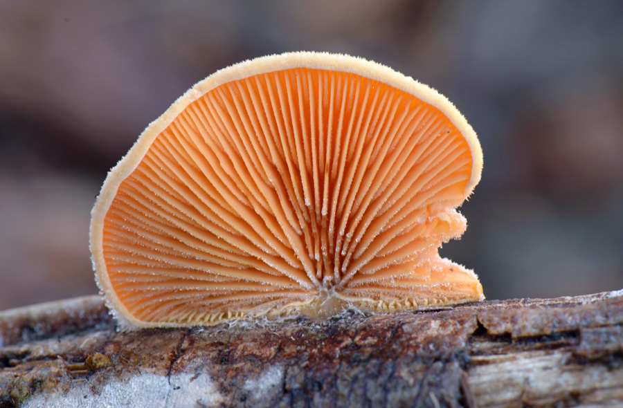 Такой рыжий гриб на гнилушке встретился первый раз, да еще их было на ней два . Сделав два снимка второго гриба села и вторая ,запасная батарея, но снимок нормально получился. А когда через несколько дней морозным утром пошел искать снежные волосы, то зашел на то же место и нашел эту же гнилушку, грибы на ней все еще были, хоть и замороженные .