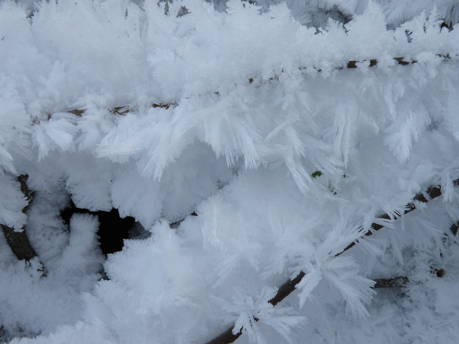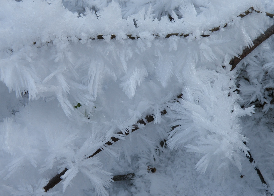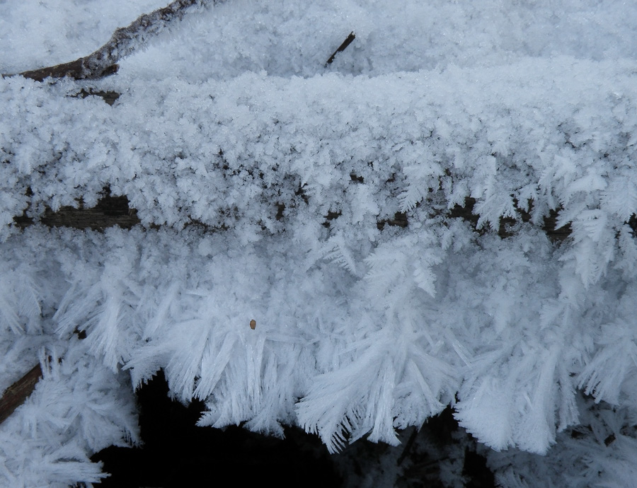 Бобров и ондатр в последнее время развелось у нас много. Об этом можно судить и по большому числу поваленных деревьев и по построенных на лесных канавах бобровых плотинах, которые ежегодно убирают соответствующие службы, чтобы не происходило затопление участков леса. Но кроме постройки плотин бобры и ондатры выкапывают в берегах норы и проходы. Мне даже несколько раз ПОВЕЗЛО провалиться ногой в такой ход, но в большинстве они обваливаются сами образуя небольшие провалы. Сейчас когда начались морозы, но в этих проходах еще остается влажный, теплый воздух , он выходя наружу охлаждается оседая на краях этих провалов ,образуя красивые , ледяные узоры.