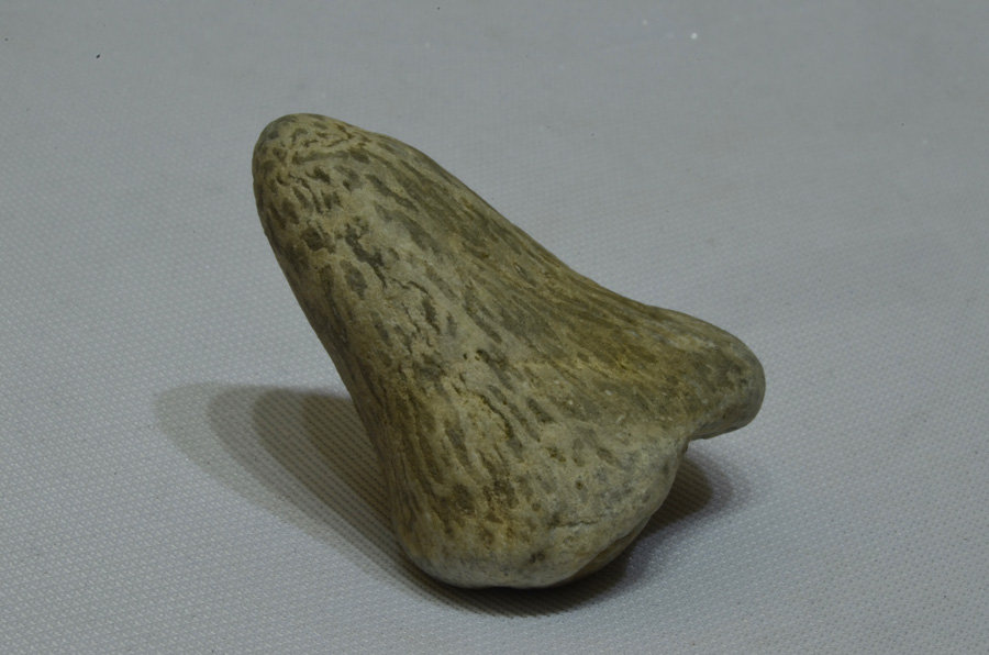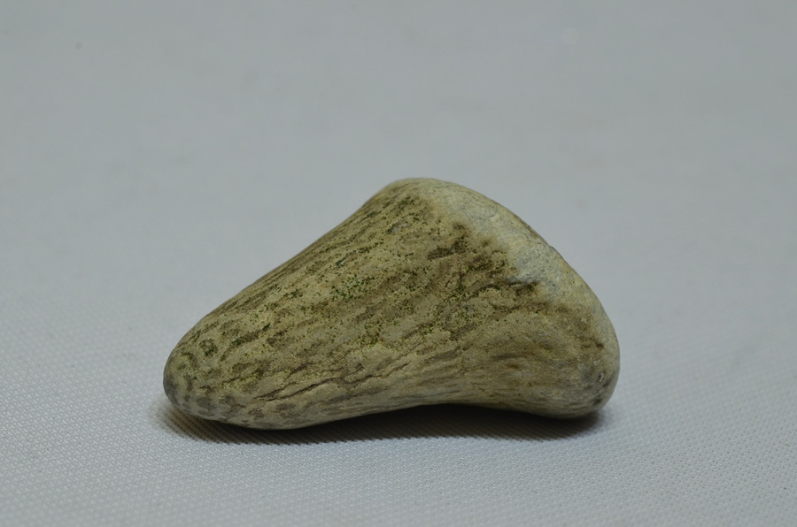 Рассказал я на работе, как мы разбирались с моей окаменевшей губкой и выяснилось, что у коллеги есть тоже интересная находка, найденная примерно в том же месте. Пообещал принести, а сегодня принес По форме напоминает чей то зуб, длинна 4 сантиметра. Форма могла получится при окатывании волнами по песку, но интересны прожилки на нем, что отличает его от простого камня.