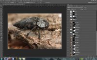 Спасибо! Предварительно сшиваю в фотошопе в автоматическом режиме(очень редко в Zerene Stacker) . Но так как снимаю живых моделей то, даже небольшое шевеление лапой или усами, приподнятие модели, уже значительно смещает дальнейшую серию кадров. И окончательную доводку, так сказать мелочей произвожу вручною вращая целый снимок или же вырезаную его часть(елемент модели) на вкладке видно часть процеса.