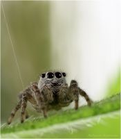 Получается, что самое интересное см. кроп, и даже взгляд вверх паука показывает о ненужности второй, правой, половины кадра, где просто на белом фоне сходятся 2 ветки. "V" получается неоднозначным - правая половина очень яркая и сочная по цвету, но по сути второстепенная, давит тёмную и по идее главную часть, не давая той раскрыться в полной мере. имхо конечно махровое