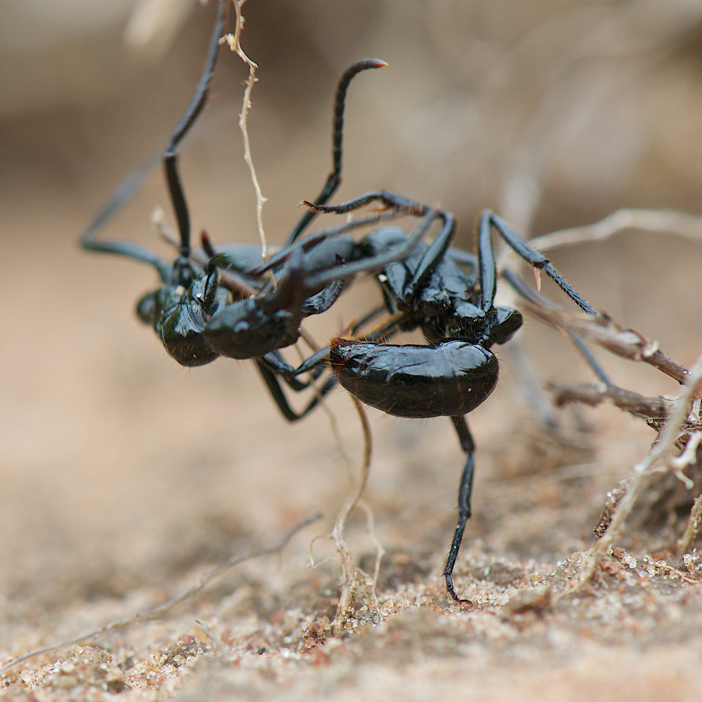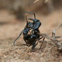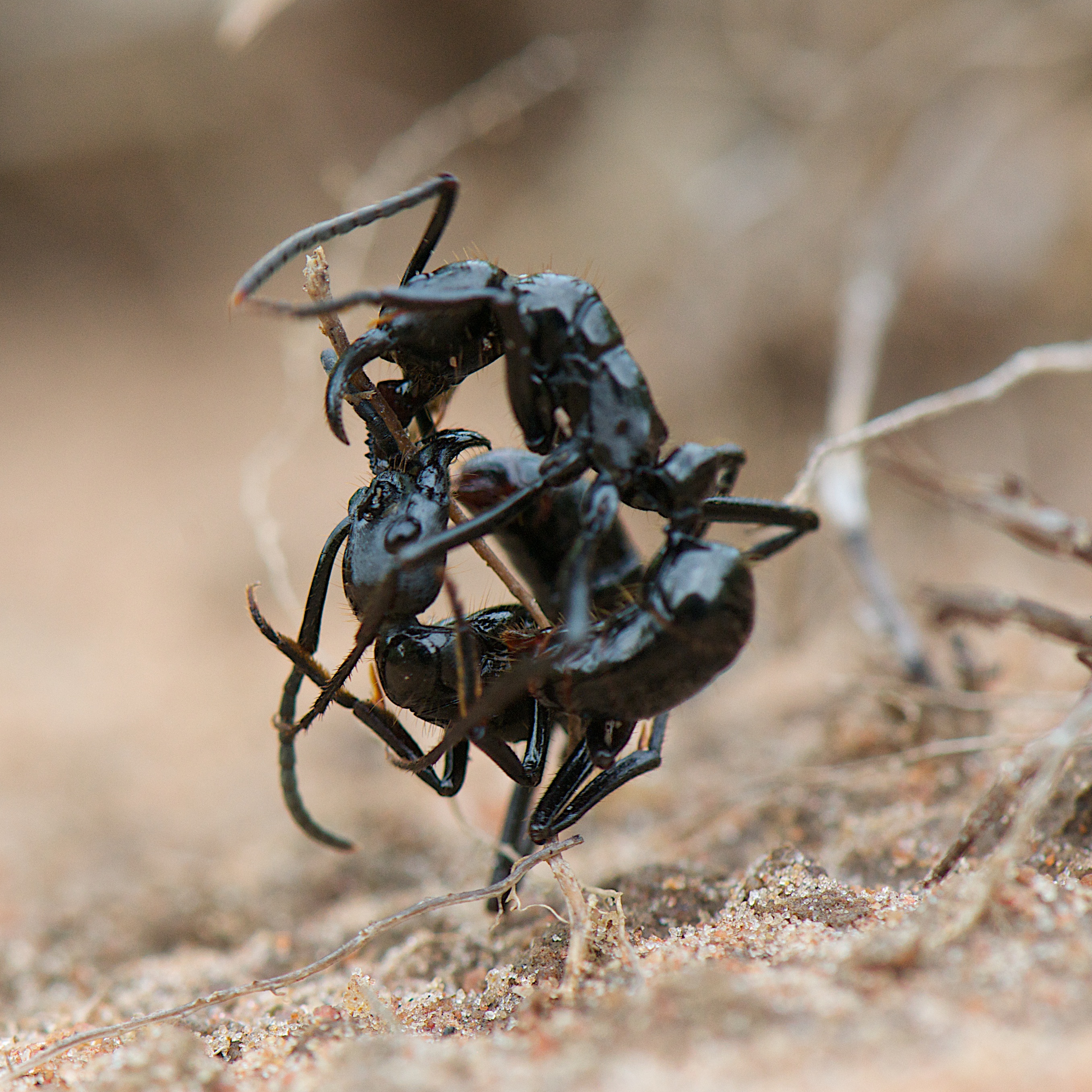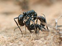 Какие отношения выясняют между собой эти два грозных существа, один удар жалом каждого из них мог бы оказаться смертельным для другого, так и осталось тайной. Но в течение всего времени, пока я наблюдал эти схватки между ними (а таких пар было несколько), ни один из муравьев никак не пострадал. Было такое впечатление, что это была просто тренировка, отработка приемов рукопашного боя, где каждый из соперников не пускал в ход свое смертоносное оружие.