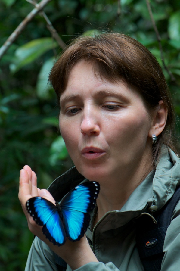 Первый раз я увидел Морфо несколько лет назад в Эквадоре. Под сводами дождевого тропического леса Амазонии вспышка яркого голубого света сразу привлекла внимание. Эти вспышки быстро прочертили светящийся след перед застывшими в изумлении путешественниками и растворились в полумраке. Не то чтобы сфотографировать, но даже увидеть Морфо еще раз уже не получилось. Но этот светящийся след остался в моей памяти и желание увидеть и сфотографировать эту замечательную бабочку с тех пор уже не покидало меня.