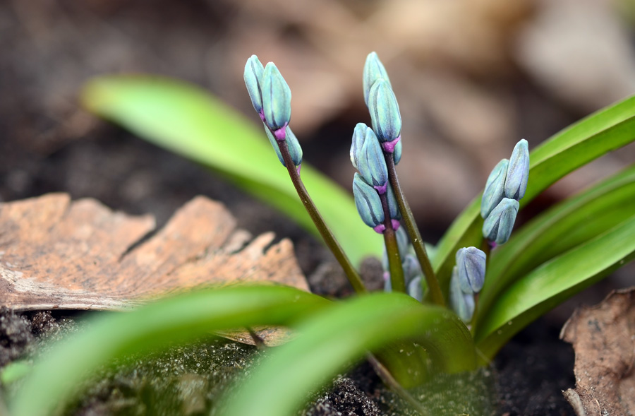 По территории ботанического их растет много, но первые появляются под кустами жасмина с солнечной стороны