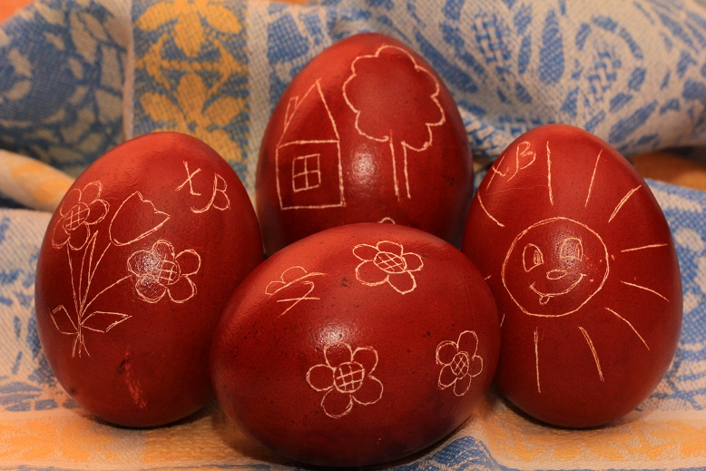 В оформлении использована луковая шелуха и резьба по скорлупе.