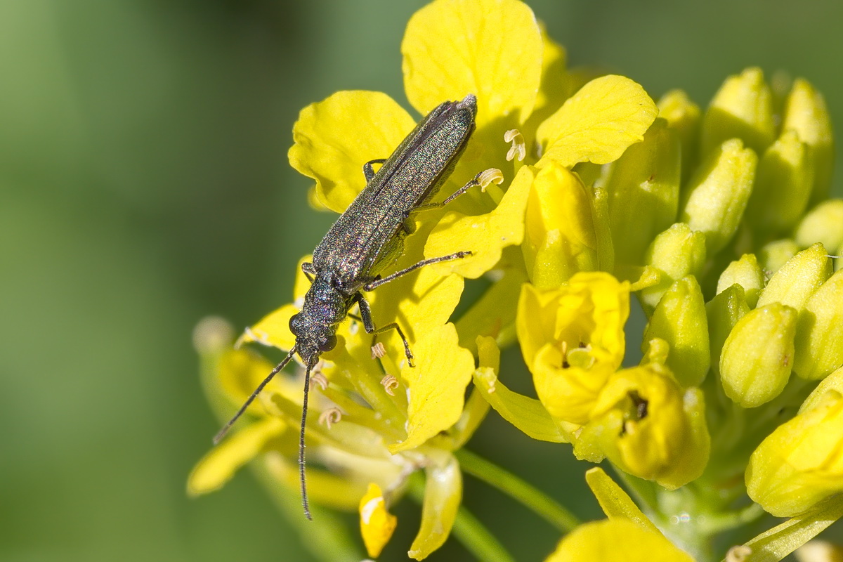Есть еще несколько похожих видов, например, Oedemera lurida (Marsham, 1802). Но она меньше - 5-8мм.