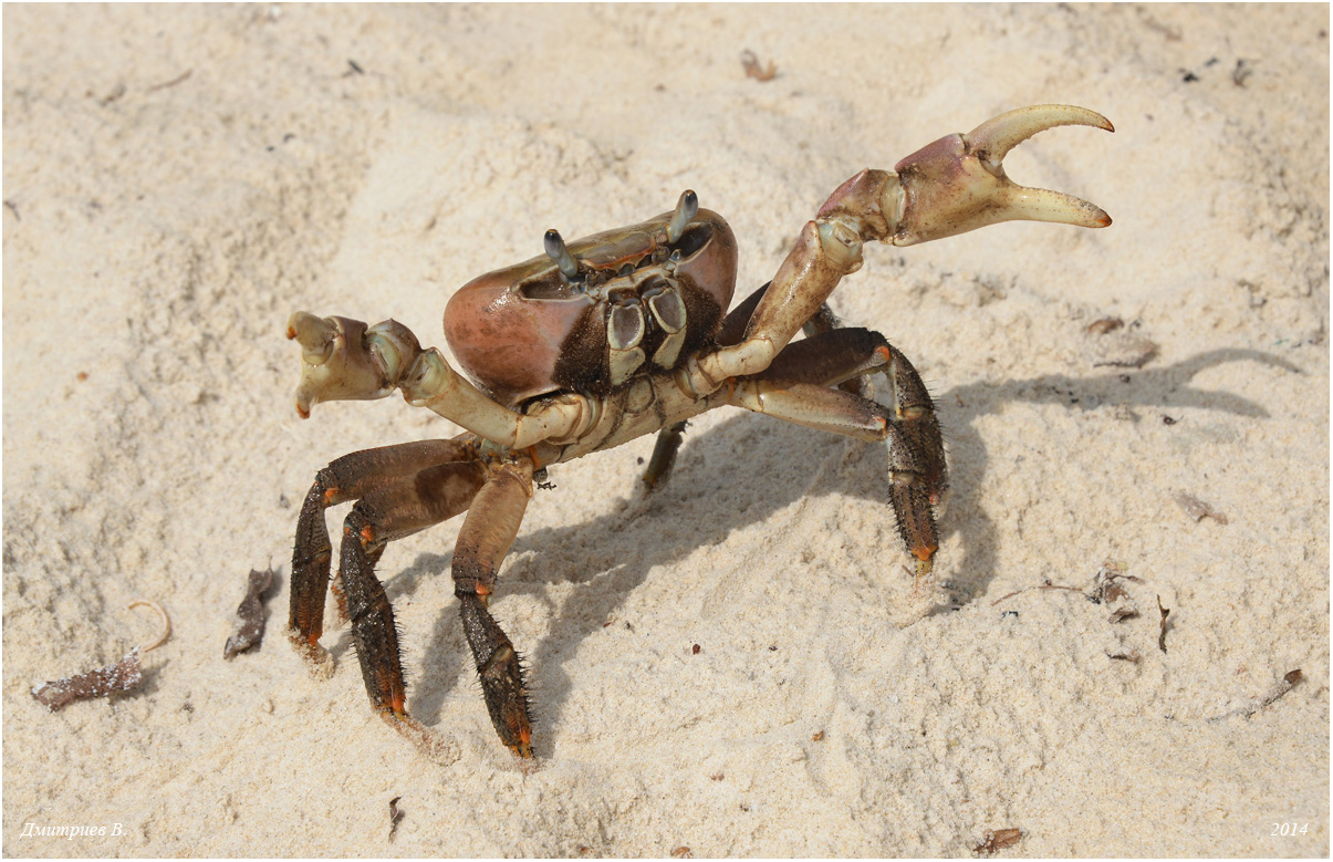 Не знаю, откуда он взялся, бегал по песку на нашем пляже... Довольно крупный - см 15-16, и мощный...