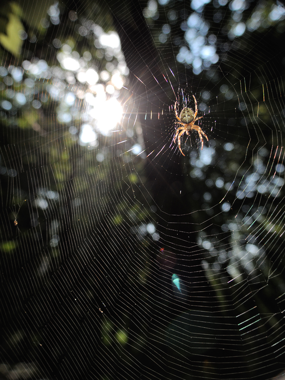 Среди деревьев нашёл паутину с крестовиком. Половил бокешки и радугу в контровом свете. Первые два фото, где паук, снимал с видеосветом. На фото с радугой усиливал контрастность и при конвертации из RAW, и ещё раз в Photoshop.