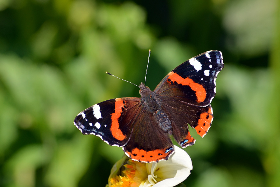 Адмиралы появились только сейчас и в больших количествах. В ботаническом их десятки в разных частях сада. Видимо это осеннии бабочки. За три дня наснимал несколько карт, но большинство в корзину. Когда нет солнца исчезают и бабочки, улетают куда то даже при заходе небольшой тучки. Постоянно в движении и близко не подпускают. Снимал на максимальном зуме. Что то Олимпусом ,что то Никоном с Сигмой 70-300 .Из того что пожалел удалять .