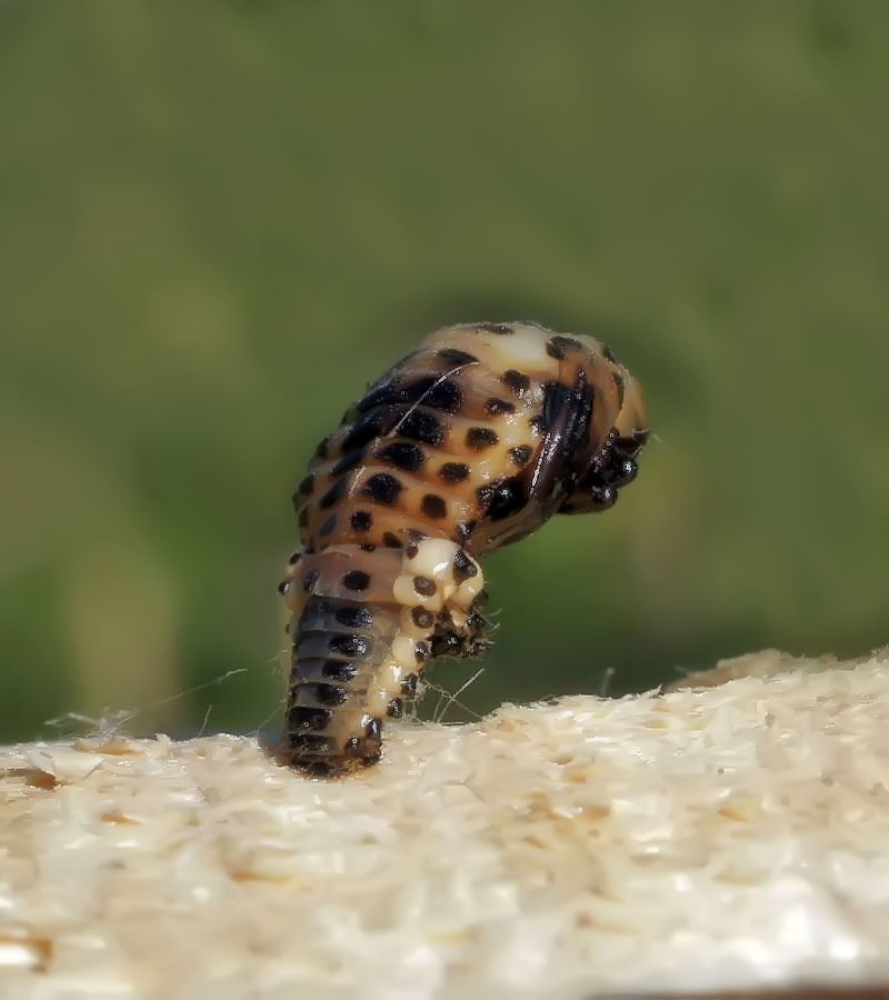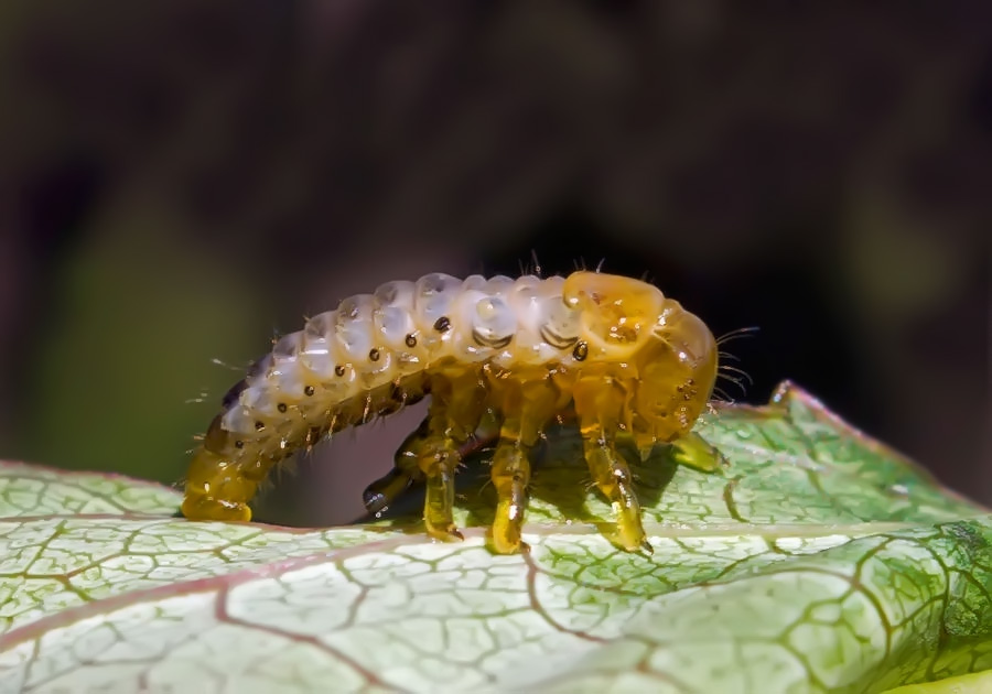 Случайно,уже на выходе с вырубки,на листике, обнаружила крохотное существо,которое отчаянно пыталось вылезти из старой шкурки...Поначалу я даже и не поняла кто это...Совершенно прозрачное,янтарное чудушко...