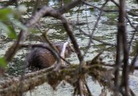 Совсем новый для меня объект. Сидела на старичном озере, караулила какую-то водную зверюшку с норами в береговом уступе, один выход которых наверху, другой - ниже или на уровне уреза воды с траншеями в дне, уводящими вглубь. Надеялась, что - выхухоль. Пока караулила - приплыл ужик. Солнце уже было высоко, все бликовало, но для порядку поснимала. А "выхухоль" показалась пару раз издалека и оказалась совсем не выхухолью.